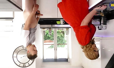 German old Grannie Erika 73 lure to Fuck in kitchen by Young Guy