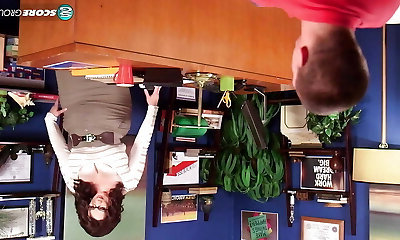 Office Cougar Lana Cox wanks off her handyman's big rigid jizz tool