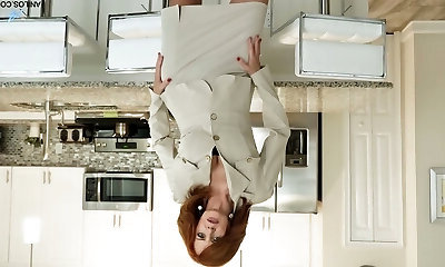 Huge-boobed mature milf maid clean in mini dress - Mini Micro-skirt - BBW SSBBW cleaning chick flashing big ass close up panties to the side