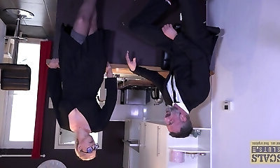 Office 3some with 80 years old grandma in stockings